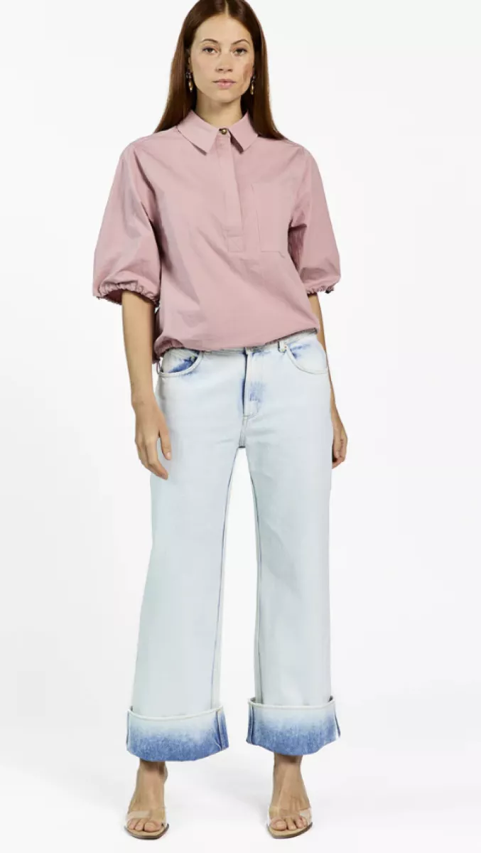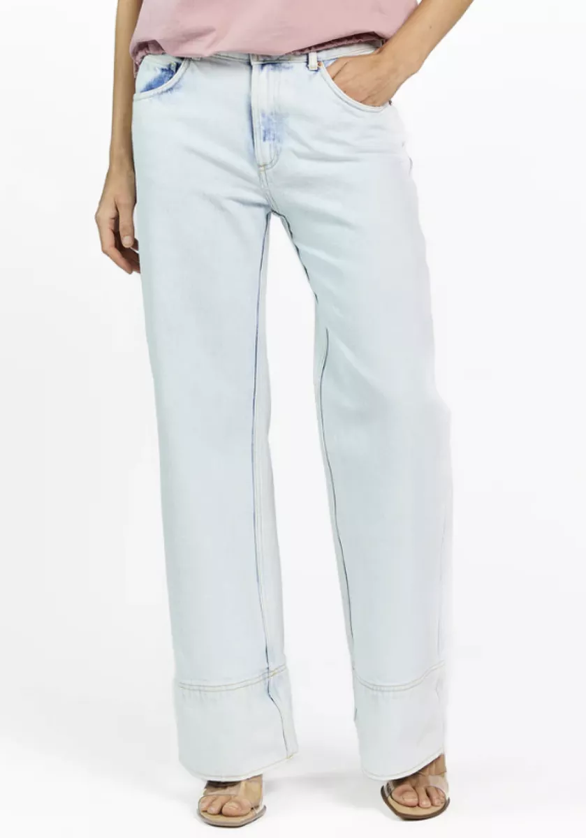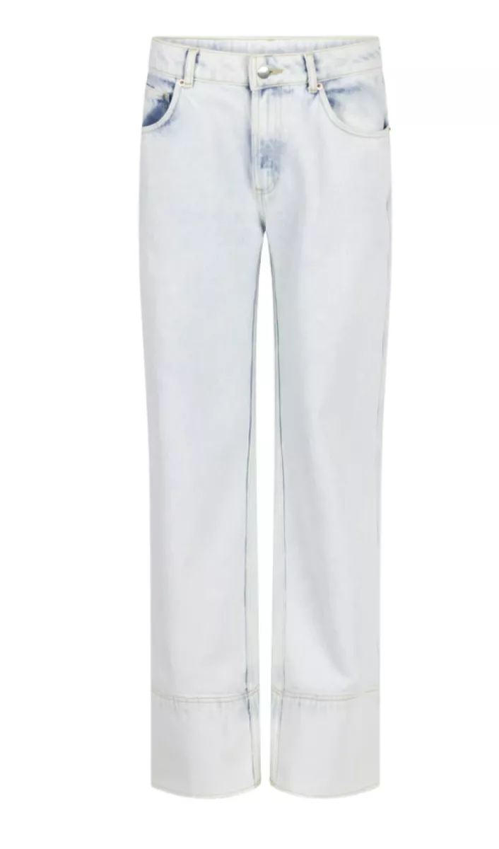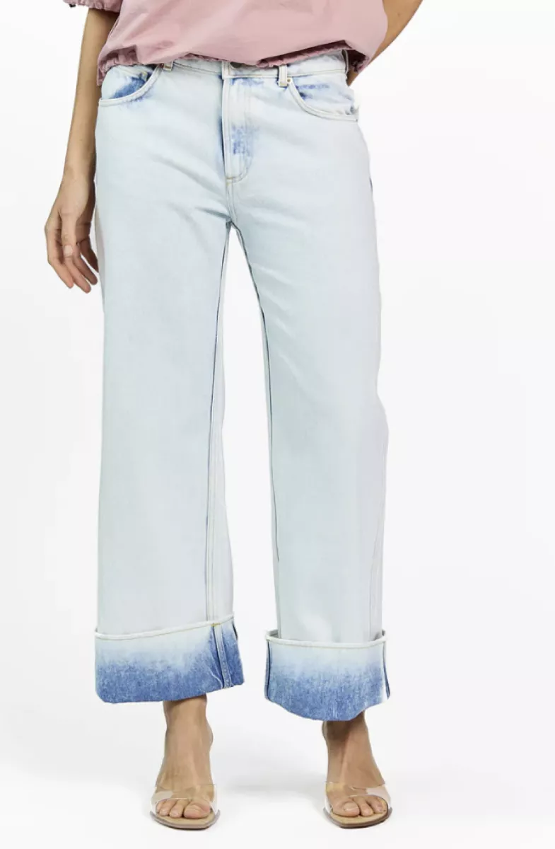 De Gaby Jeans is een moderne fit met een opvallende afwerking. De rechte pijpen eindigen in een brede omgeslagen zoom met een subtiele washed look. Gemaakt van stevig denim met lichte stretch en een hoge taille voor extra comfort. De iets wijdere pasvorm geeft een relaxed silhouet. Combineer met de Lydia top voor een gebalanceerde look.