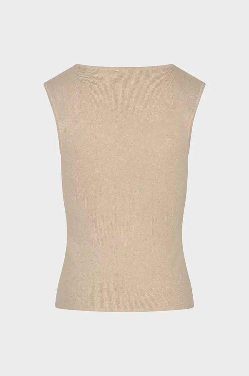 Deze beige mouwloze dames top straalt pure, ingetogen elegantie uit. Het minimalistische design en de verfijnde halslijn maken dit een tijdloze everyday essential die moeiteloos te combineren is voor een stijlvolle look.