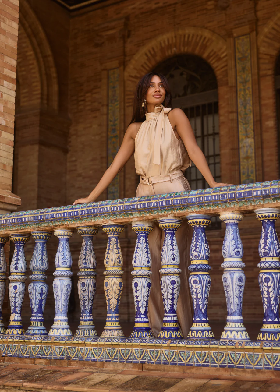 Ben je op zoek naar een outfit die écht indruk maakt? Deze prachtige combinatie van Freebird is de perfecte balans tussen feestelijke glamour en nuchter draagcomfort. In een warme, goudachtige tint is dit een set waarin je straalt op elk diner of bijzonder feestje, maar die je ook verrassend makkelijk los van elkaar kunt dragen.