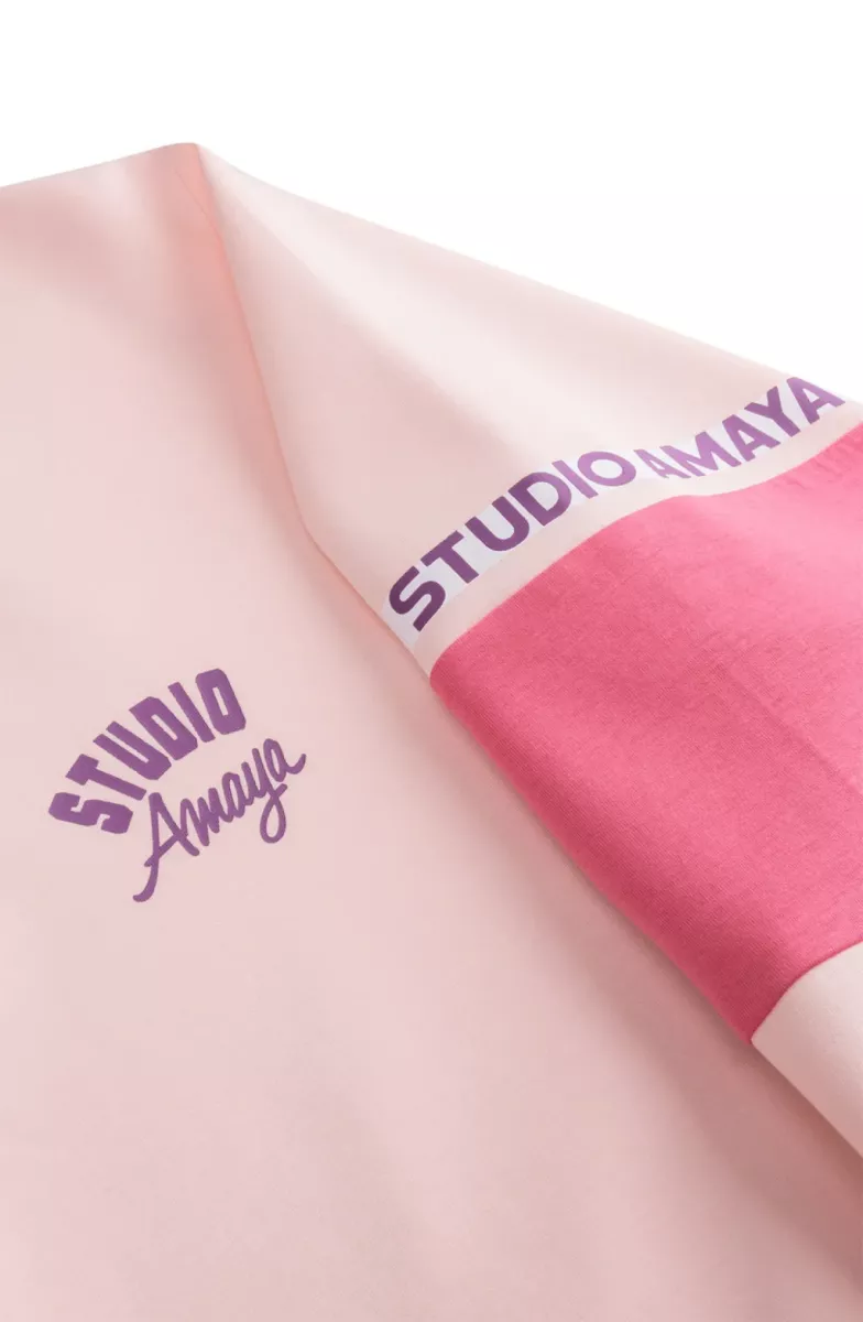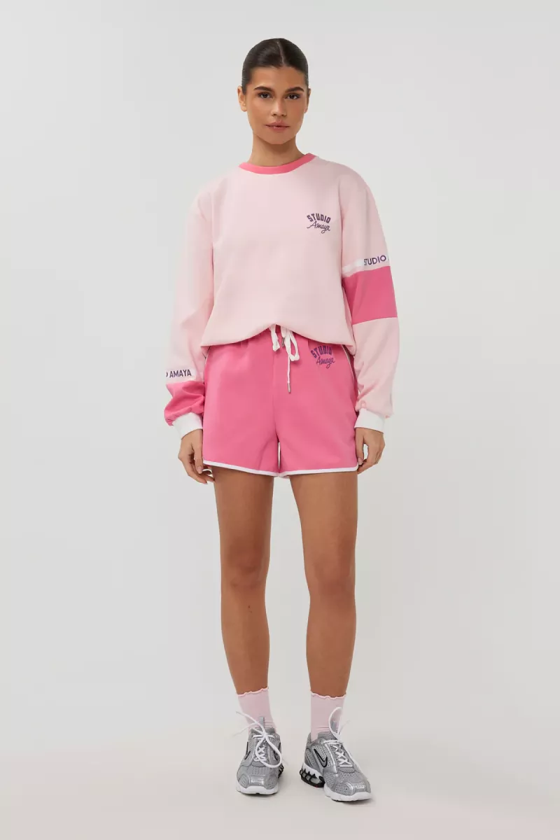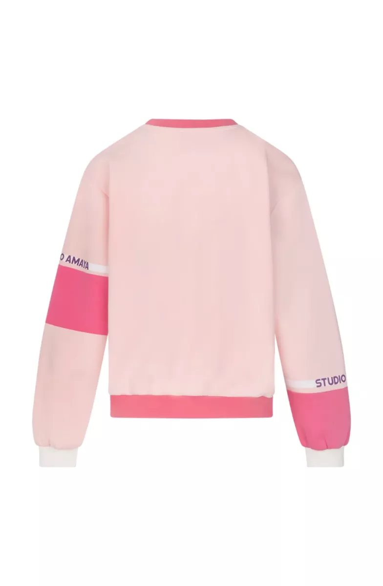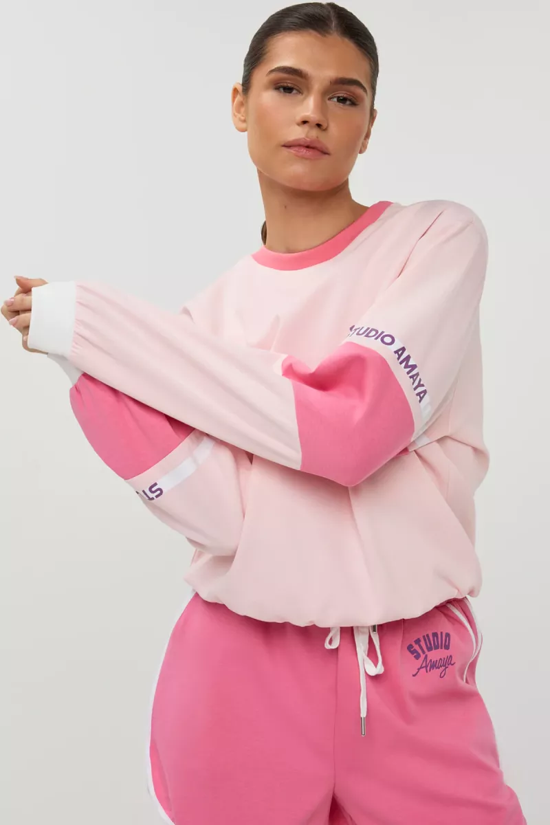 The Flex Sweater combines comfort with a sporty, modern feel. Designed with a classic crew neckline and a regular fit, it features ribbed cuffs and hem for a comfortable finish. The subtle Studio Amaya logo on the front is paired with sporty colorblock details on the sleeves, adding a playful athletic touch. Easy to style with leggings, denim or matching sweats for an effortless everyday look.