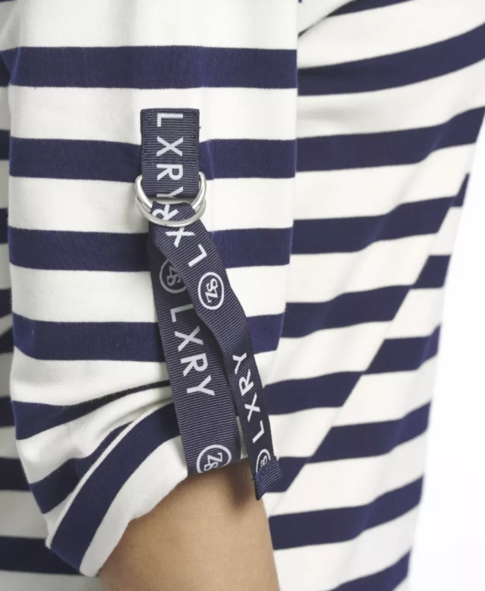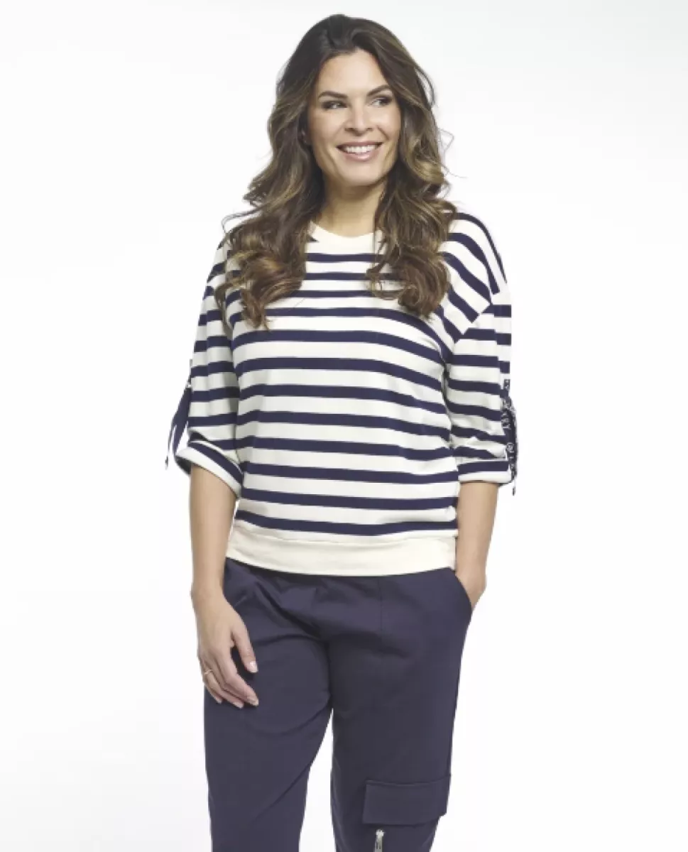 Het gestreepte dessin Manon in de kleur kit-night blue geeft de trui een frisse, tijdloze uitstraling, terwijl de subtiele sportieve details zorgen voor een eigentijdse look. De Manon heeft een rond halsje, lange mouwen en een rechte snit, waardoor hij zowel casual als stijlvol te dragen is.